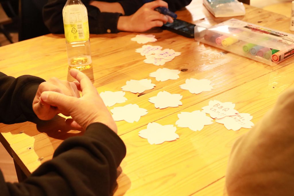 今回のプログラムの地域活動ミッションは、種地区でおこなわれている「種ふるさとまつり」に運営スタッフとして関わること。集まった5名の参加者と一緒に、当日のお手伝いと振り返り、これからの地域活動の作戦会議を実施しました。